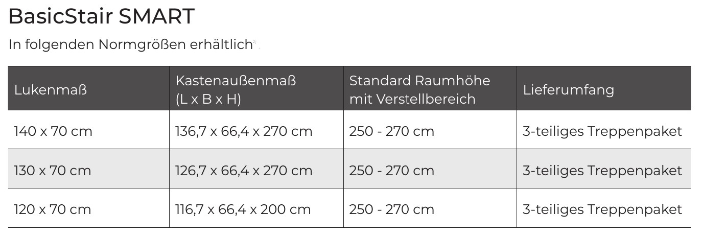 Die BasicStair SMART überzeugt durch eine technisch ausgereifte Konstruktion, die auf Sicherheit, Komfort und Energieeffizienz ausgelegt ist. Der Unterdeckel ist mit einer integrierten Wärmedämmung ausgestattet und erreicht einen U-Wert von 0,7 W/m²K, wodurch Wärmeverluste über die Decke wirkungsvoll reduziert werden.